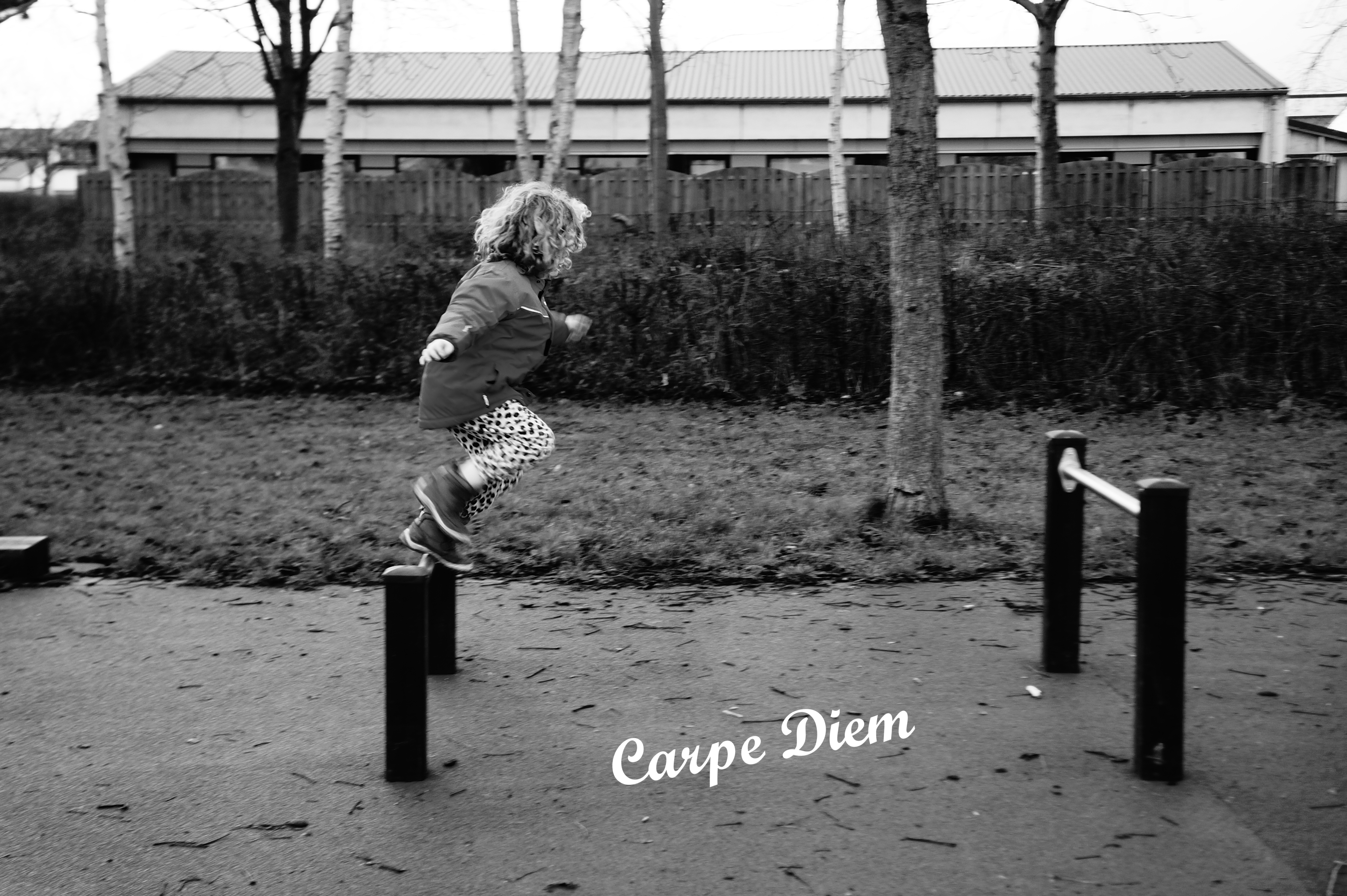 Carpe Diem betyder grib dagen eller lev livet i dag uden at tænke på morgendagens bekymringer. Det er det jeg tænker på, når jeg ser billedet. Det for mig til at tænke på, hvor ofte vi lader chancer går fra os, fordi vi bekymrer os, hvad der vil ske i morgen. Jeg siger ikke, at vi skal stoppe med at tænke os om, men jeg tror vi nogle gange mister nogle muligheder ved at tænke for meget over tingene. Vi siger nej tak til muligheder der byder sig, alene fordi vi ikke ved hvad det får af konsekvenser. Men hvem siger, at det altid vil få negative konsekvenser, måske skaber det bare flere muligheder, skaber nye relationer og venskaber, og frem for alt nye oplevelser vi ellers aldrig vil få.