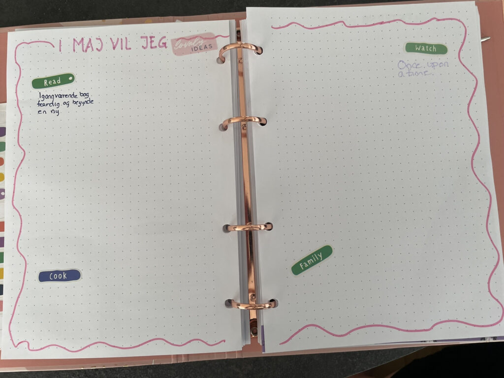 En liste over ting jeg vil enten gøre mere af, bedre eller bare lave i den kommende måned. Det er en god inspiration til at gøre noget ved ting, som man ikke altid får gjort. For eksempel læse en ny bog eller prøve en ny opskrift.